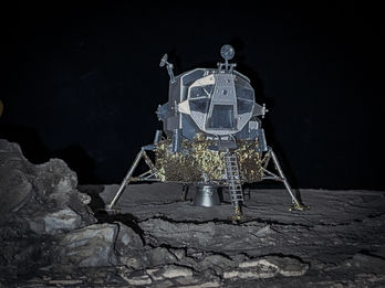 All miniatures were divided into sub-sections for accurate printing and to allow the addition of components during assembly. Both the Moon Lander module above and the CMS module to the left needed to rotate and separate as the lander descended toward the moon.
